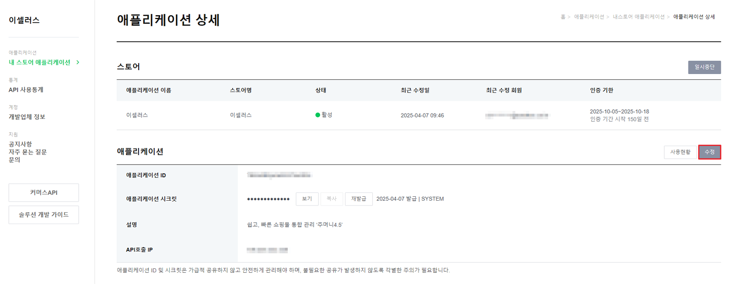 ■ 네이버 커머스 API 내 API호출 IP는 어떻게 변경하나요?