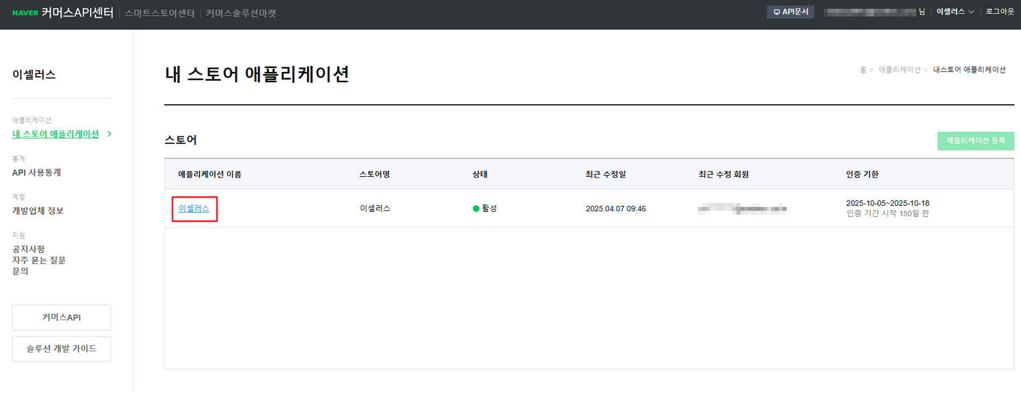 * 참고 : 네이버 커머스 API는 통합매니저로만 발급 가능