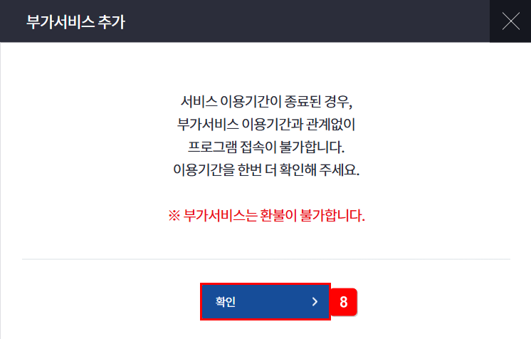 5. 부가서비스 추가 관련한 안내 내용을 확인 후 [확인] 선택합니다.