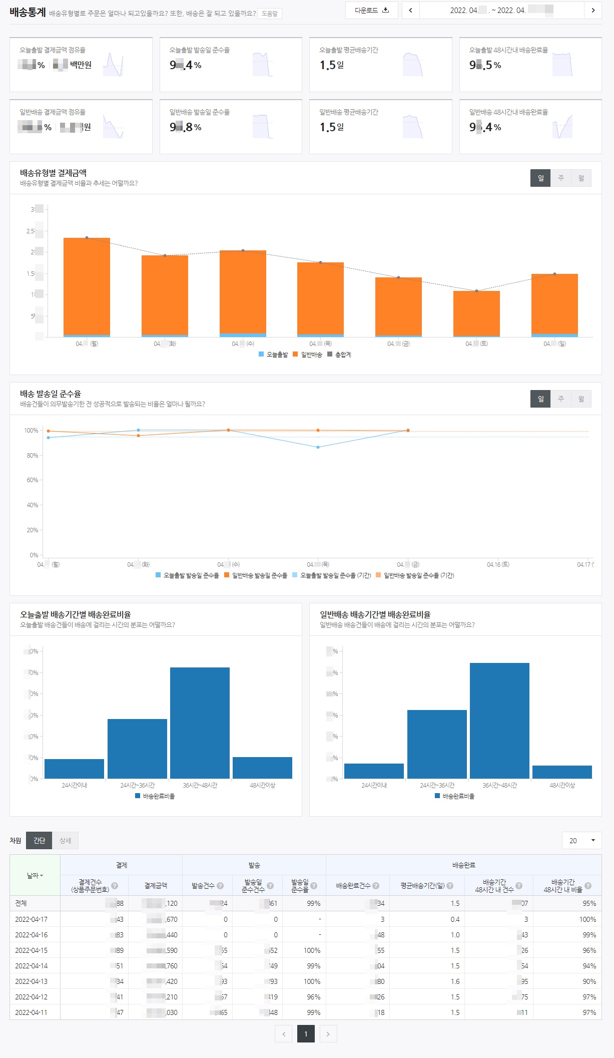 - 배송 의무발송기한 준수가 잘 되고 있는지 확인할 수 있습니다.