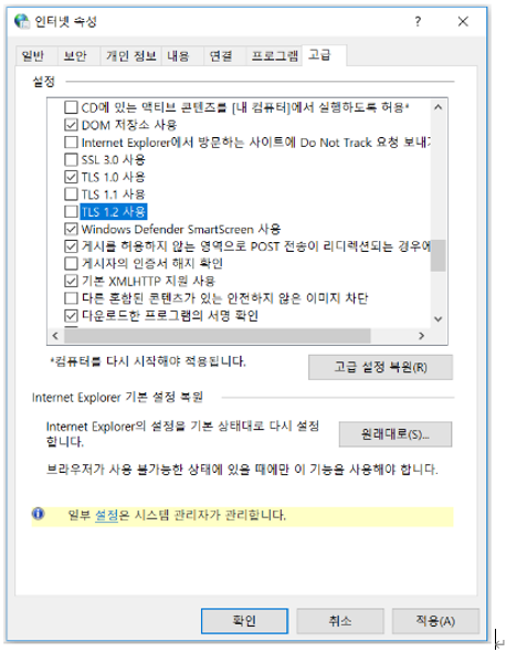 ■ TLS 1.2 사용 설정 방법