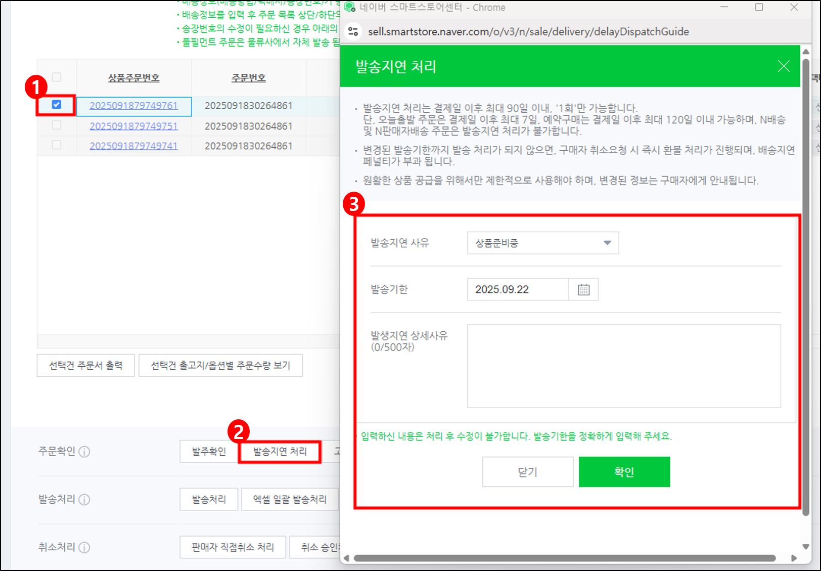 2025년 추석 연휴를 대비하여, 페널티 / 발송지연 처리 / 반품교환 수거지시 관련 등
