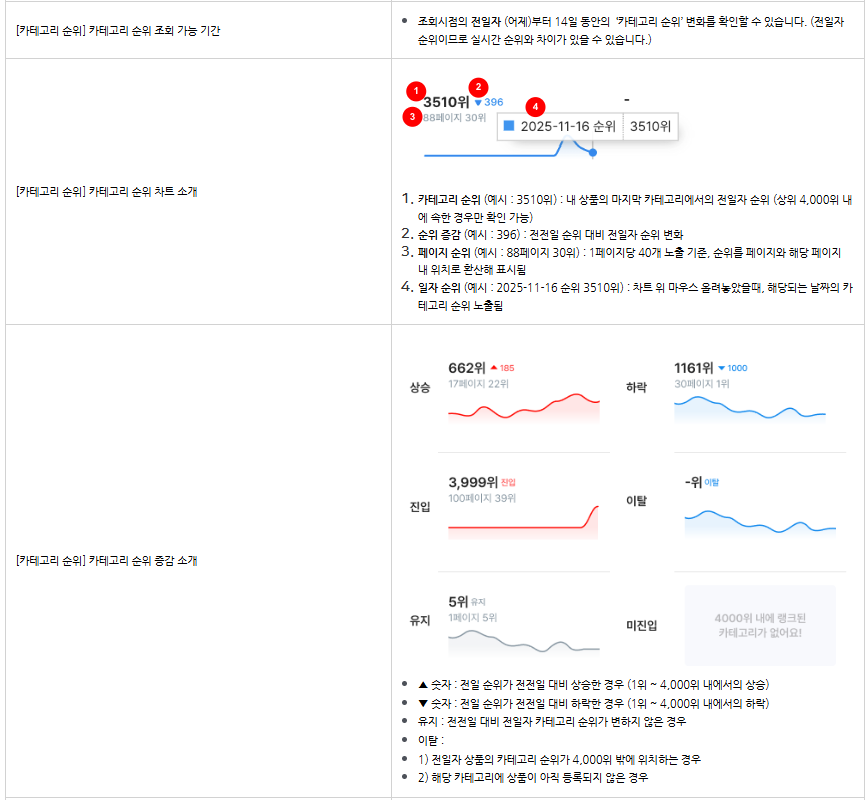 카테고리 순위 : 내 상품의 마지막 카테고리 기준으로, 해당 카테고리에서 1위 ~ 4,000위 내에 속한 경우