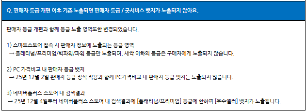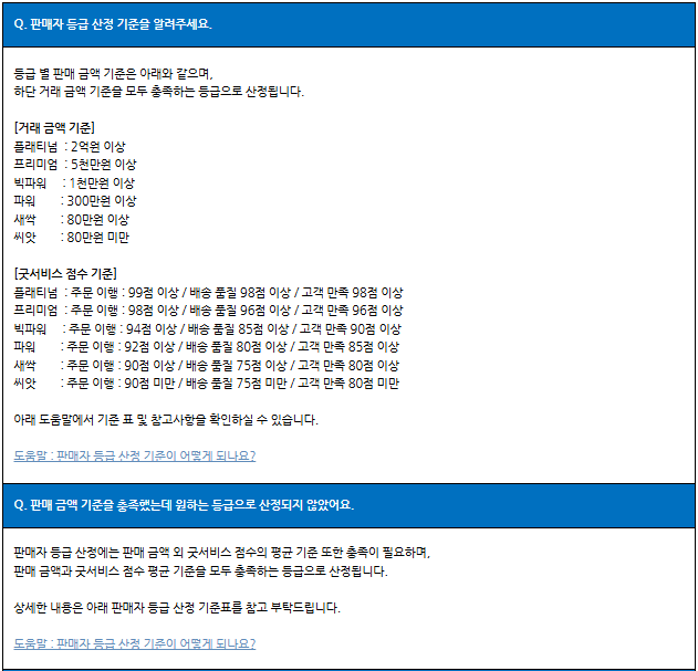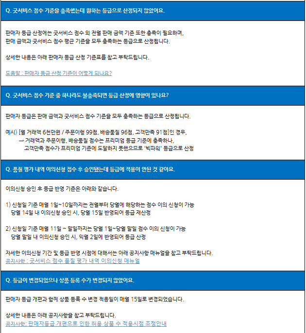 등급 개편으로 판매자님들께서 많이 문의하시는 사항을 안내드리니 이용에 참고 부탁드립니다.