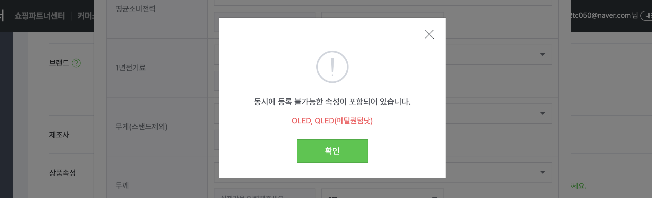 - TV 카테고리에서 OLED와 QLED 속성을 동시에 등록할 수 없습니다.