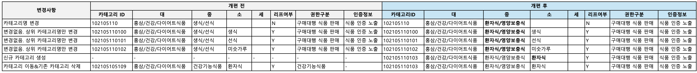 • 변경없이 상위 카테고리명만 변경 (총 3개)