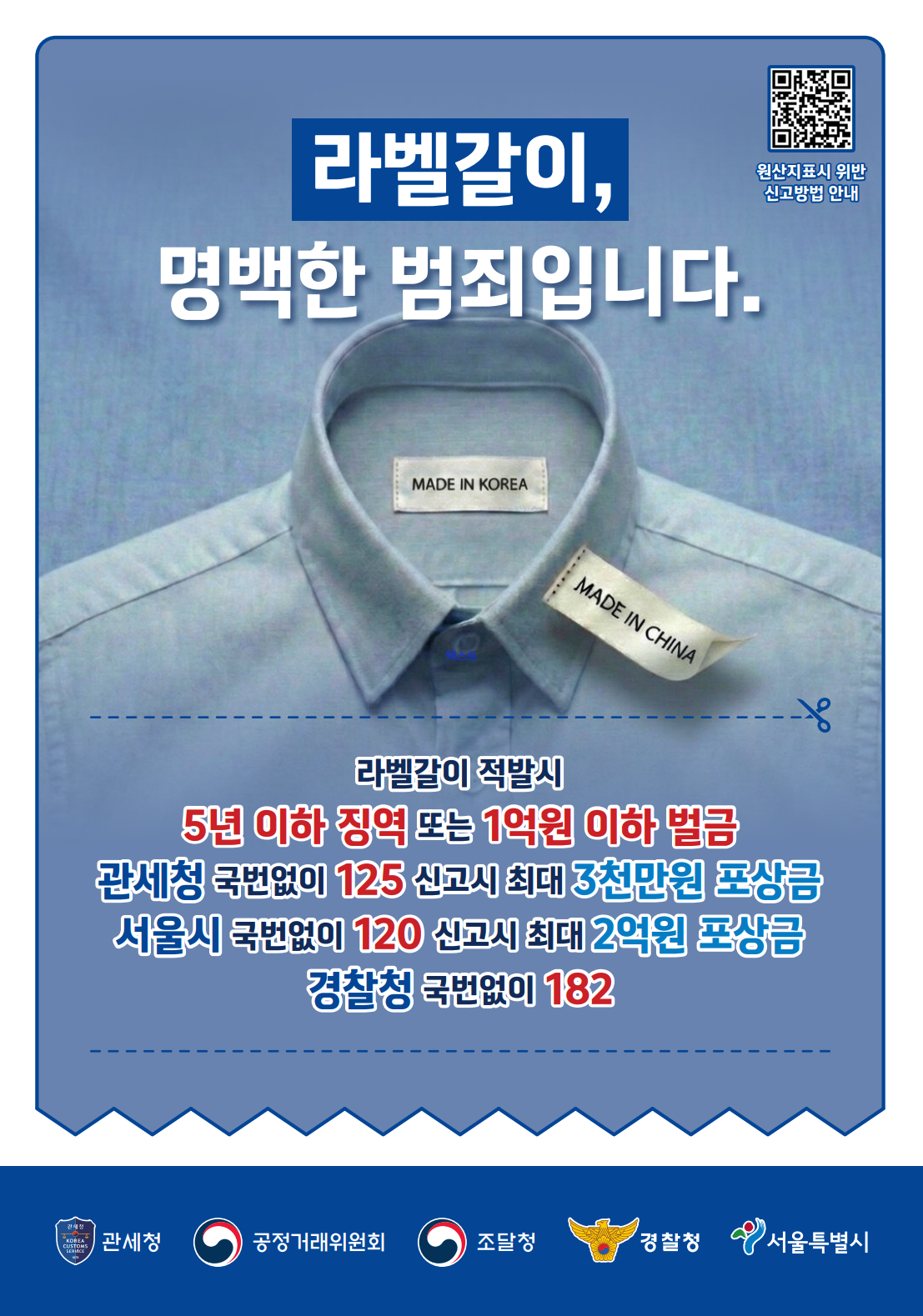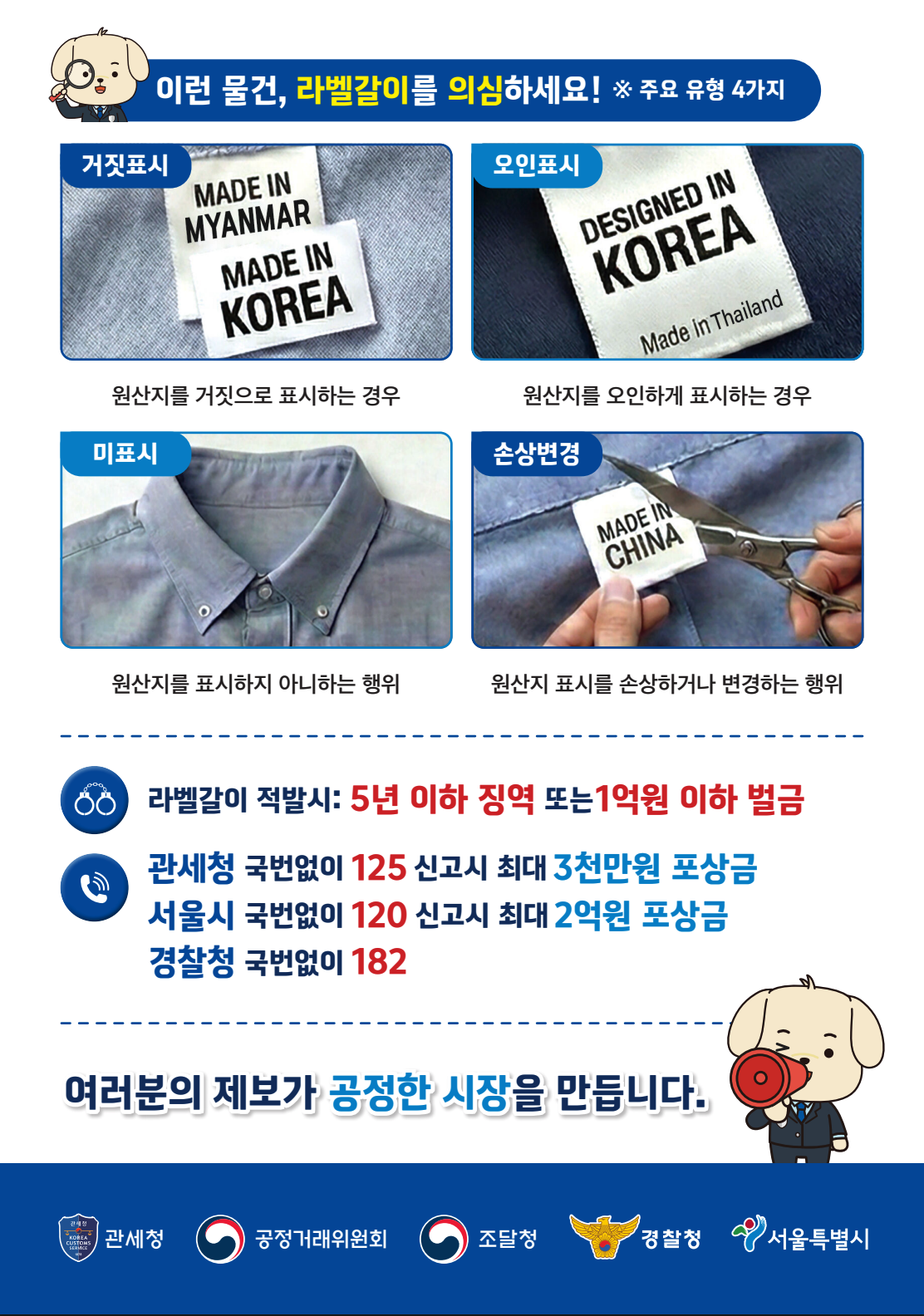 관세청에서 안내한 수입 의류 원산지표시 위반행위 주의 관련 내용을 안내드립니다.