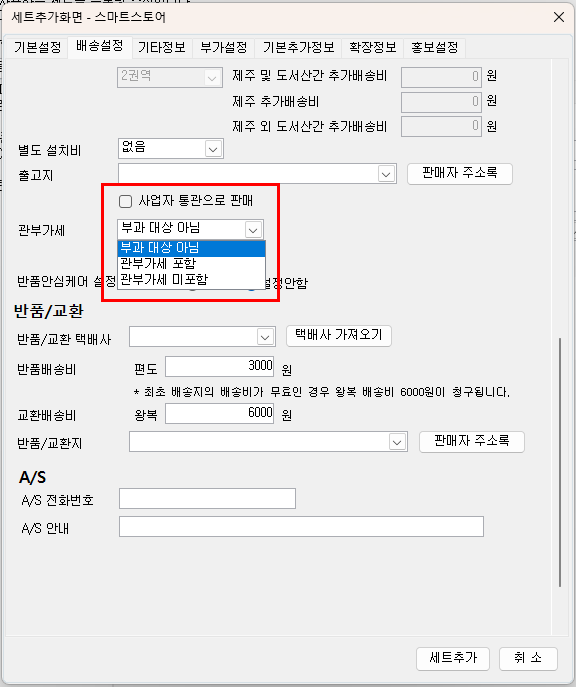 스마트스토어 상품 등록/수정 시 '관부가세' 설정 가능하도록 기능 추가되어 안내드립니다.