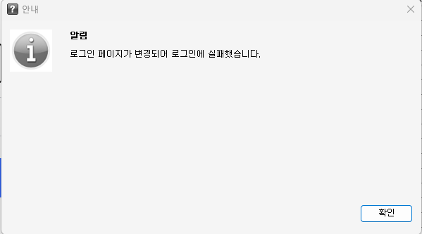 - 오류 메세지 : 로그인 페이지가 변경되어 로그인에 실패했습니다.