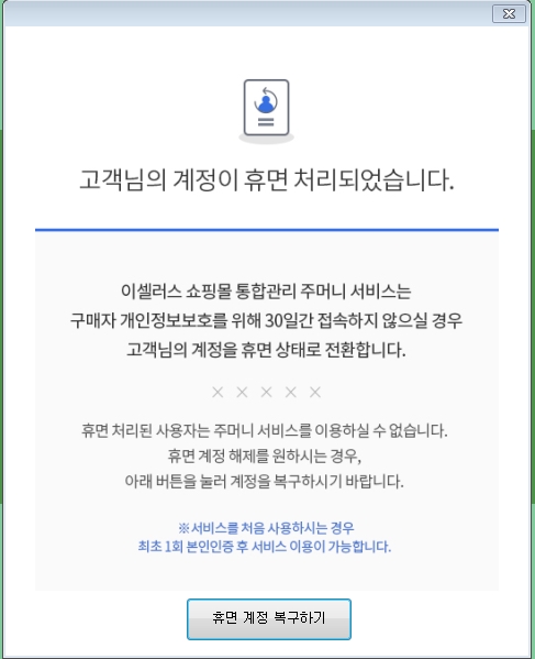 휴면 계정 해제 시 본인인증 절차가 필요합니다.