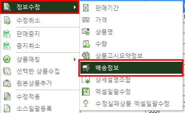2. 진행상품>리스트에서 상품선택>우클릭>정보수정>배송정보 클릭
