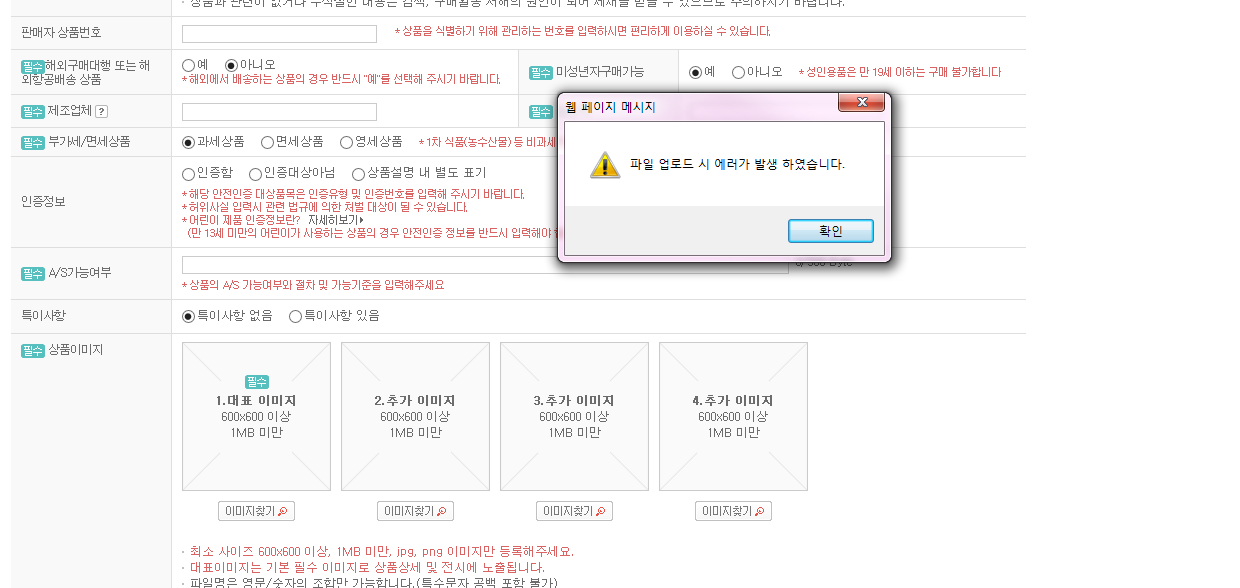 *등록 실패 사유 : ex-파일 업로드 시 에러가 발생 하였습니다.