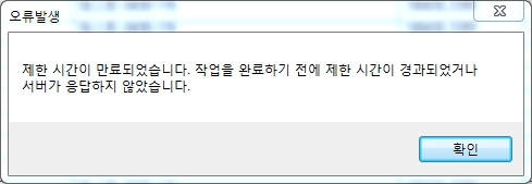 제한 시간이 만료되었습니다. 작업을 완료하기 전에 제한 시간이 경과되었거나 서버가 응답하지 않습니다.