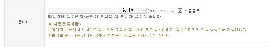 3) 상품수정 : [진행상품>목록이미지]는 수정이 불가합니다.(비활성화)
