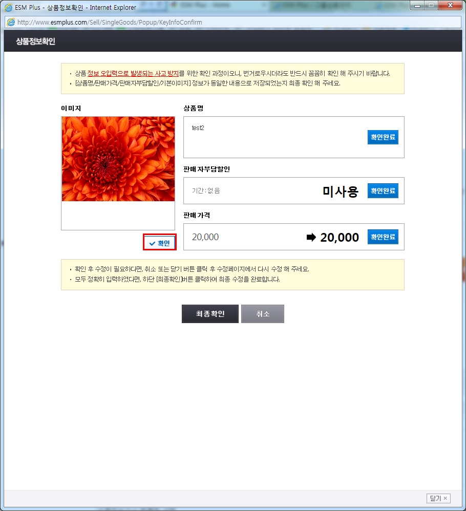 ESM 문의하여 확인 시 기존에 안내 드렸던 [상품정보확인] 단계 추가와 무관하게