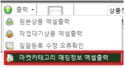 - 원본상품>출력>마켓카테고리 매칭정보 엑셀출력 메뉴를 통해 다운로드 받을 수 있습니다.