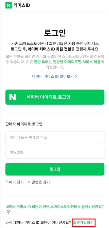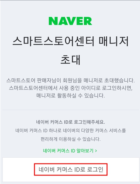 7. [네이버 커머스 ID로 로그인]을 클릭합니다.