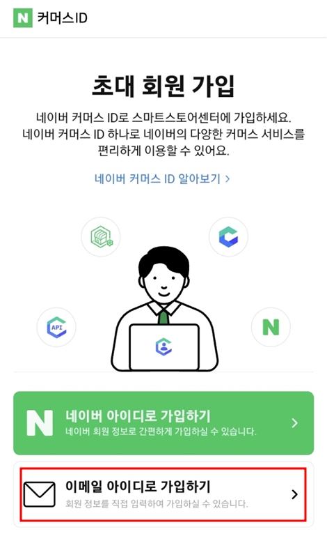 9. [이메일 아이디로 가입하기]를 클릭합니다.