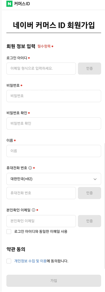 10. 정보 입력 및 이메일 주소 인증절차 완료 후 [가입] 클릭합니다.