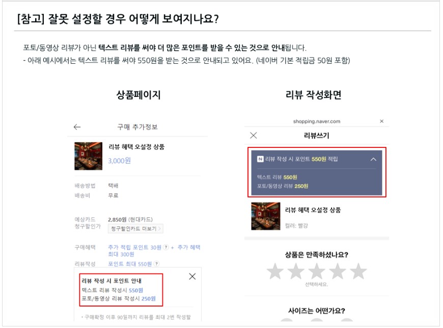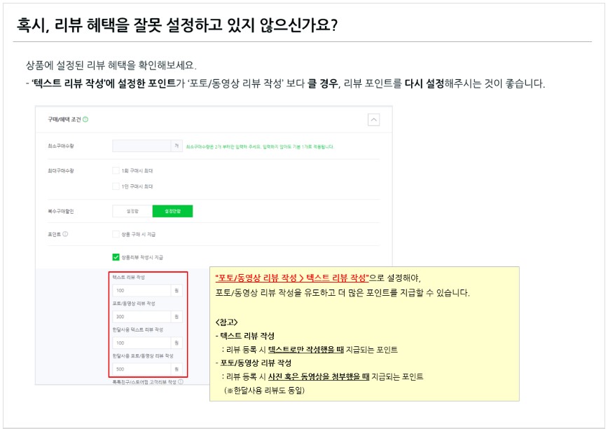 스마트스토어 상품 등록 시 리뷰 혜택 설정에 대한 유의사항 안내 드립니다.