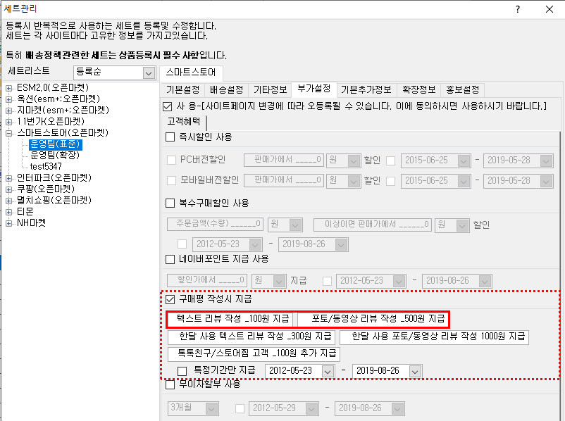 [상품관리 스마트스토어 세트 설정 시]