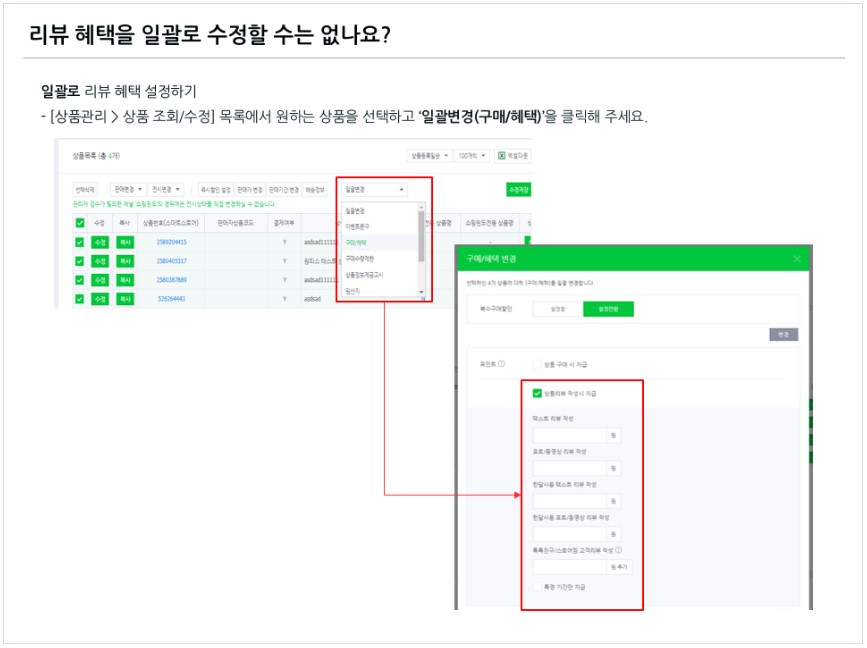 [리뷰 혜택 일괄 수정 방법]