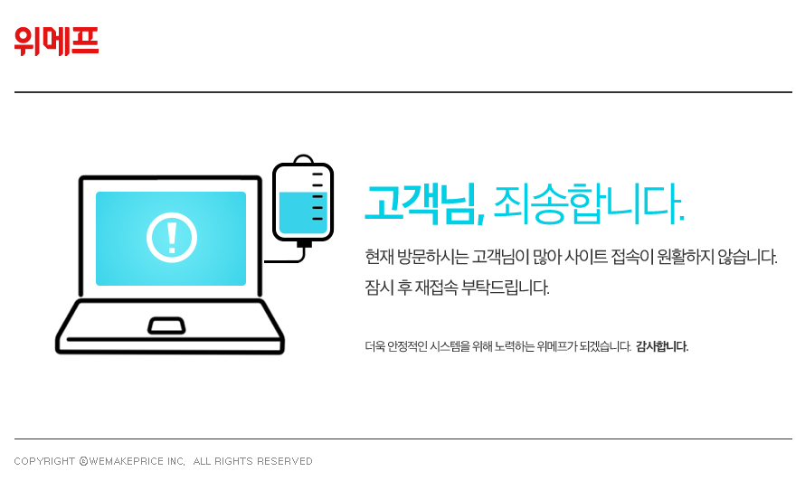 위메프1.0 사이트장애로 인한 작업 실패 안내(정상화)