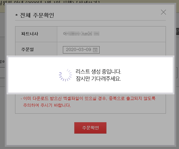 현재 위메프1.0 사이트에서 주문건 엑셀 다운로드 실패로 인해 주문 수집 작업이 실패되고 있어 안내 드립니다.