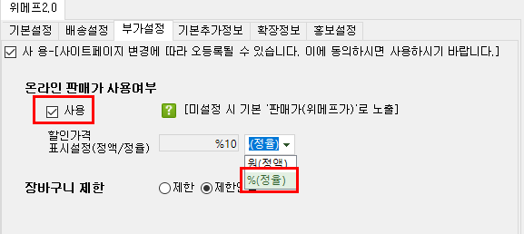 정율로 할인을 설정하셨을 경우 판매가가 0원으로 등록되는 증상이 있어 안내 드립니다.