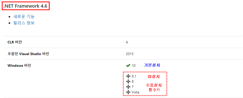윈도우10을 제외한 나머지 윈도우OS에서는 .NET 4.6 버전을 필수로 설치해주셔야 합니다.