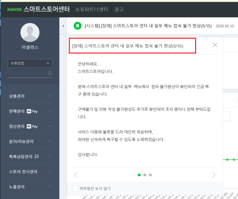 스마트스토어 API 장애로 인해 주문 수집 실패되는 증상이 있어 안내 드립니다.