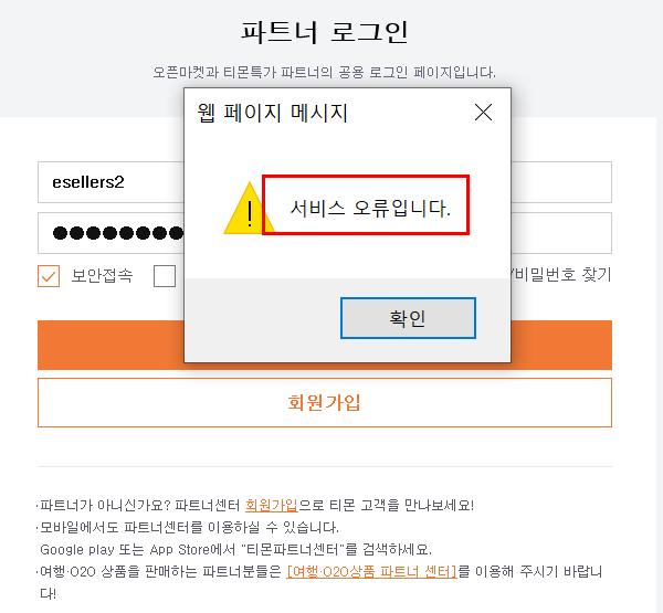 티몬 사이트 장애로 인해 상품등록, 수집, 주문수집 실패 현상 안내(정상화)
