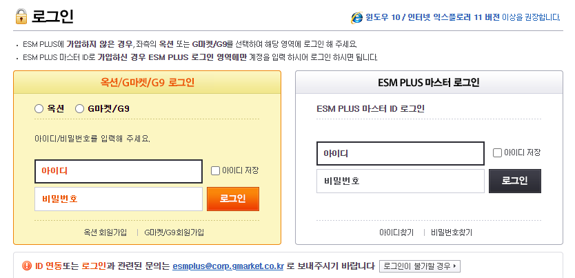 ESM 사이트 오류로 인한 접속 실패 현상 안내